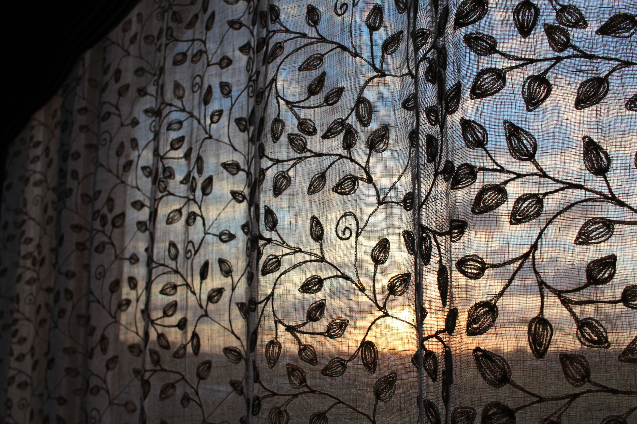 レース越しに見える夕日がとても美しく、思わず見とれてしまいました。