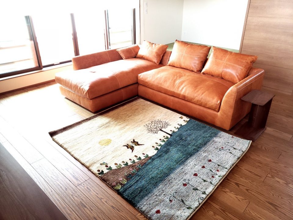 落ち着いた風景がモチーフのアートギャッベと共に、これからリビングで過ごされるひと時も特別な時間になりそうですね。