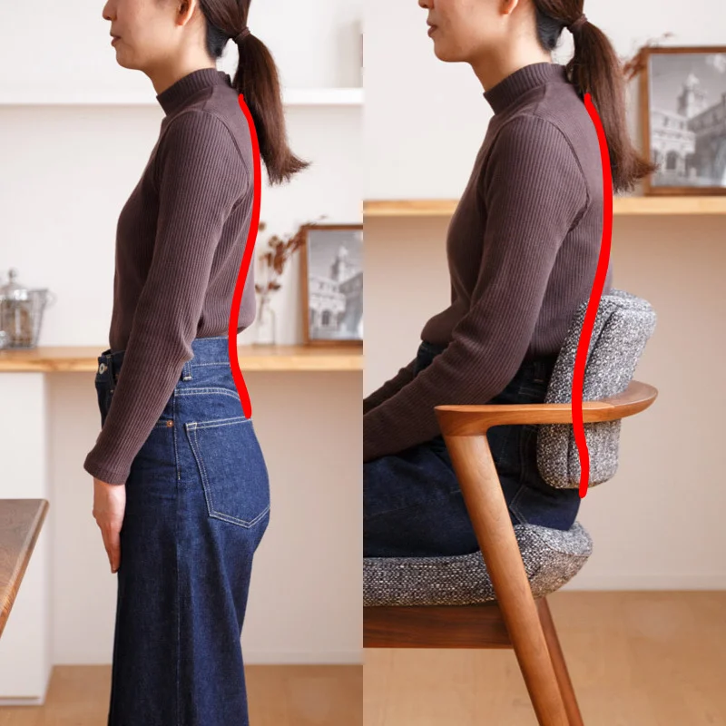 椎間板に負荷が少ないと言われている立っている時の姿勢をそのまま維持できるよう、背もたれは、縦・横それぞれにカーブを付けた構造になっています。