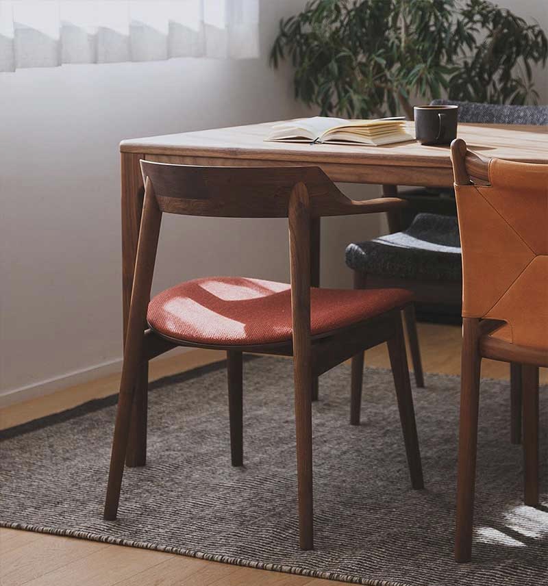 低めの座面で、食事からリラックスしたいときまで、どのシーンにも連れて行きたくなります。