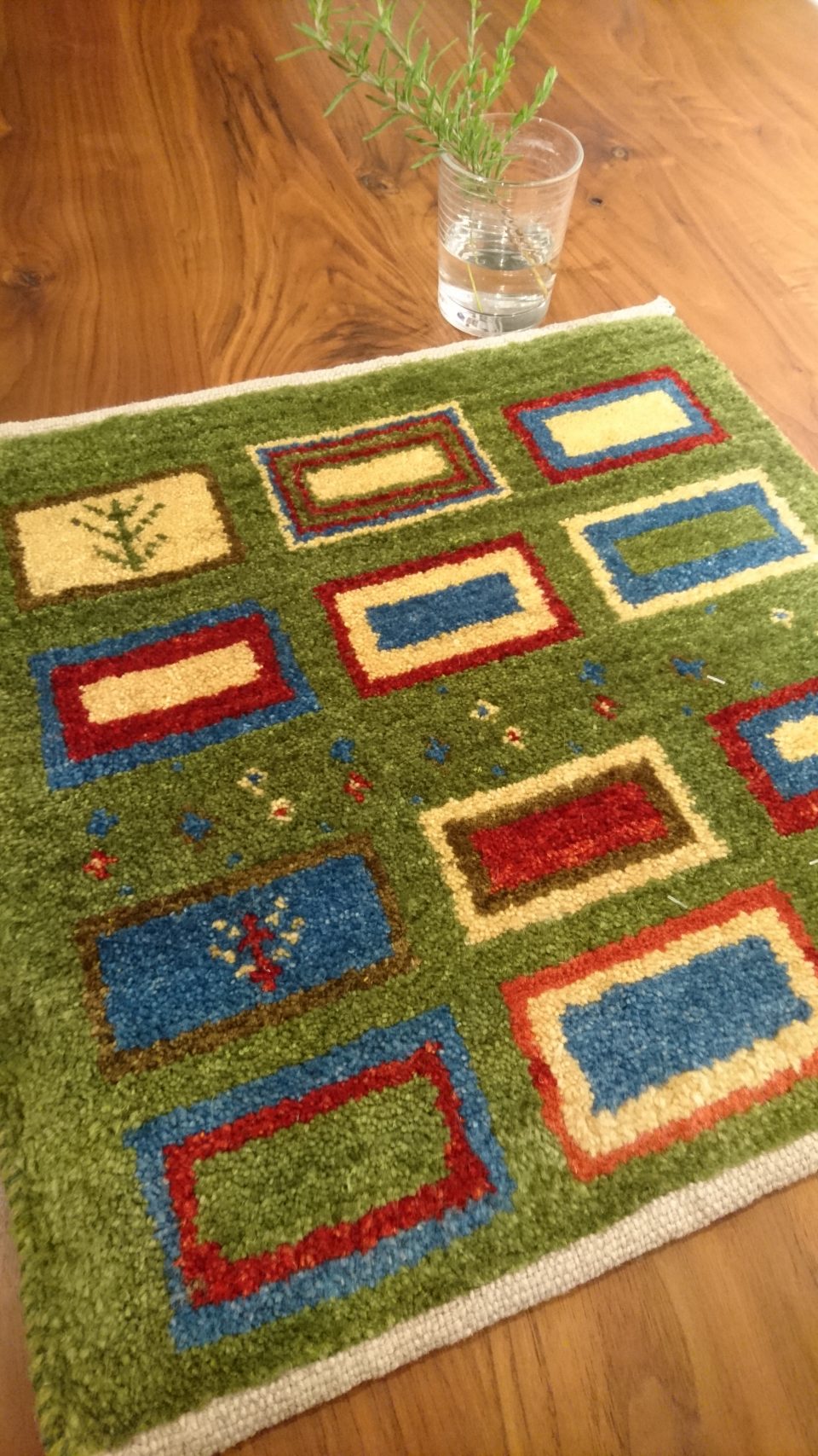 椅子の上や、床の上のお座布団替わり、また車のシートの上に置くのにもちょうど良いミニギャッベ。