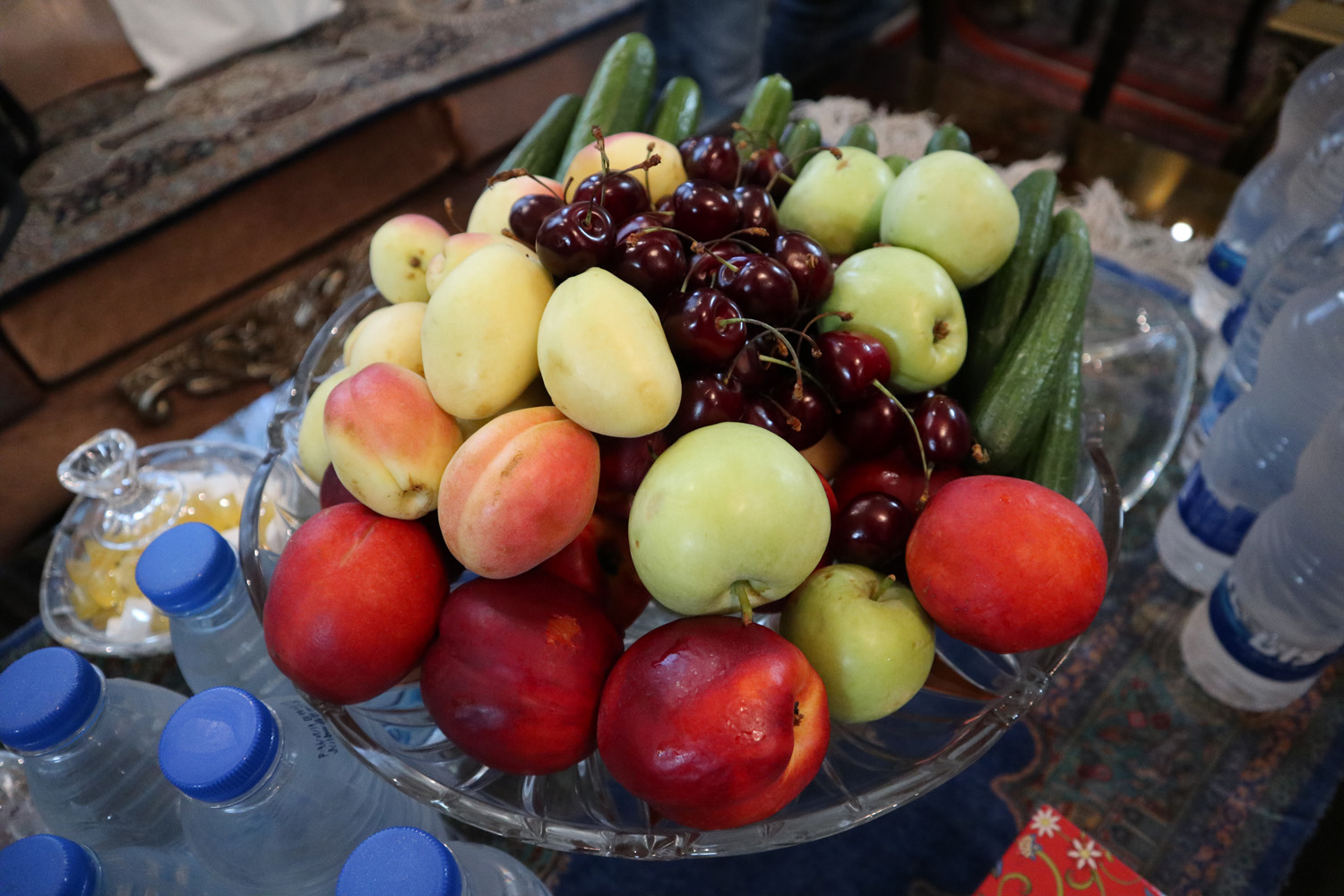 お店で、ホテルで、お家に招かれたときも・・・必ずと言って良いほど、熱いチャイと山盛りのフルーツでもてなしてくれます。雨が少ないので、フルーツは甘みが凝縮されてとってもおいしいです。ちょうど今はさくらんぼが旬でした。
