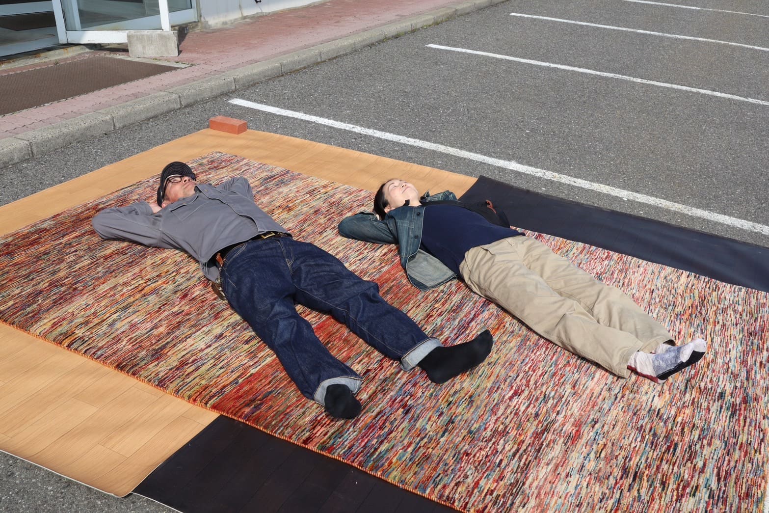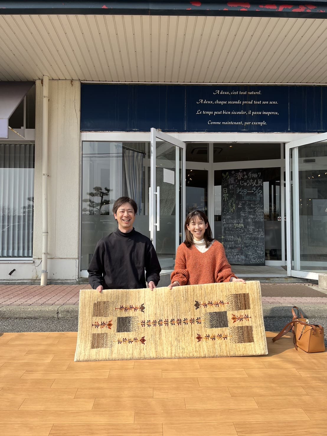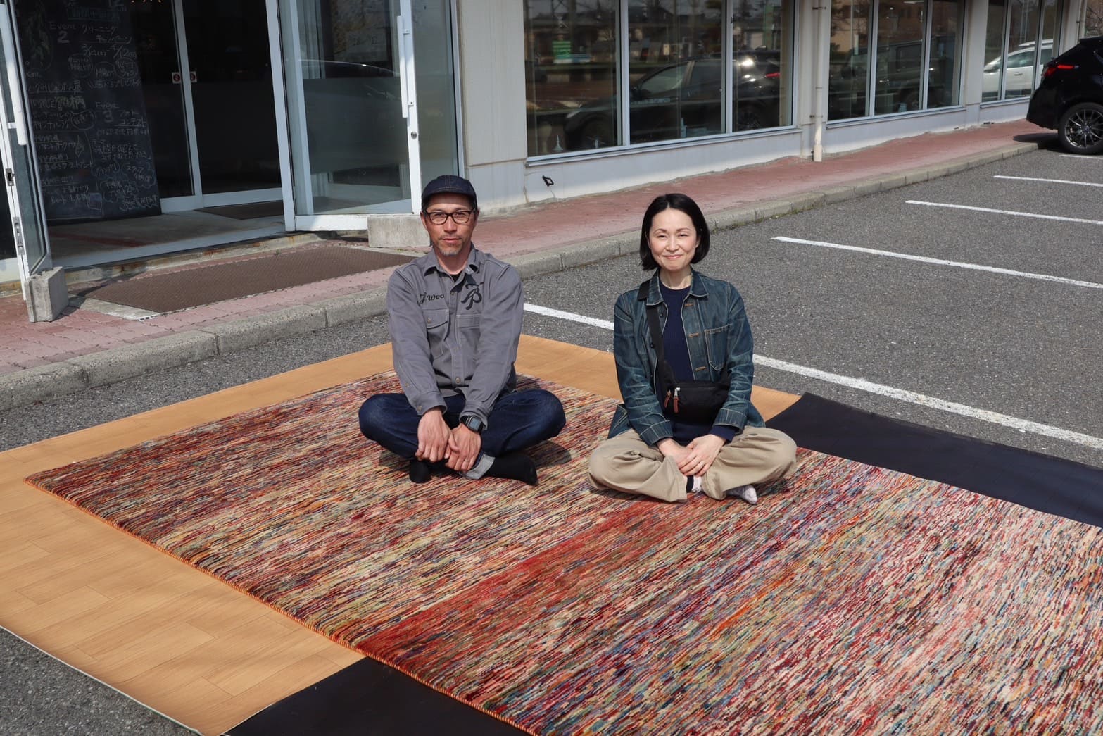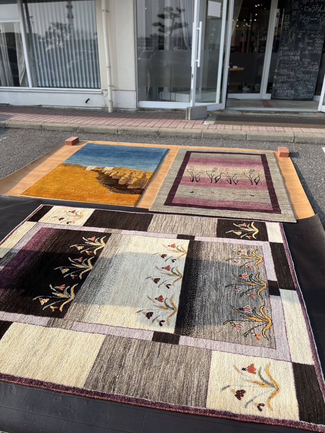 昨日はお天気がよかったので、こんな風に屋外の特設コーナーで気になるギャッベやハグみじゅうたんをたくさんご覧いただきました。