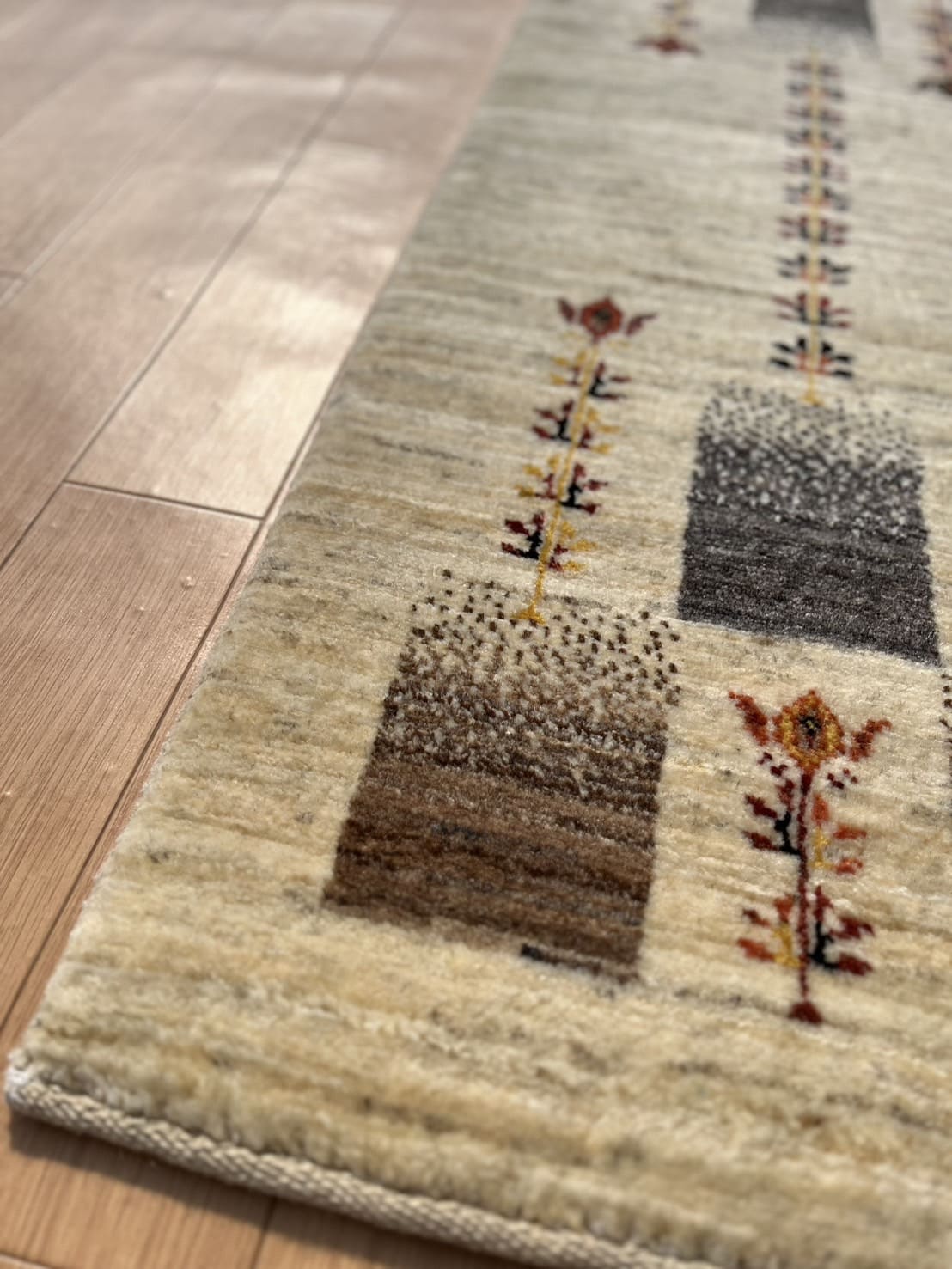 ところが…色とりどりのギャッベを一緒に見ている中で、特別やわらかいこちらの一枚に出会ってしまいました。