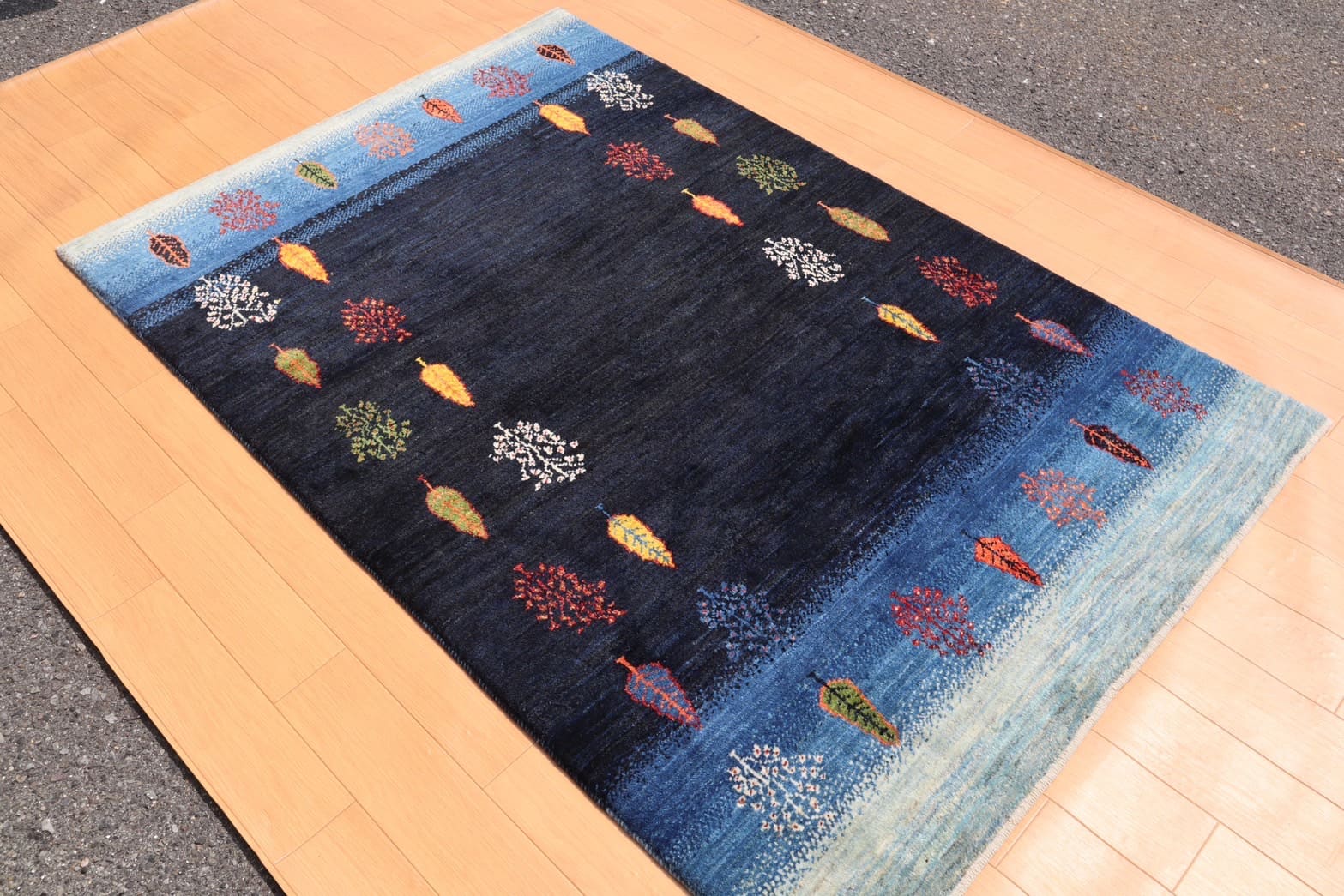 こちらは、「ネイビーが大好き」というお客様にお迎えいただいたギャッベ。