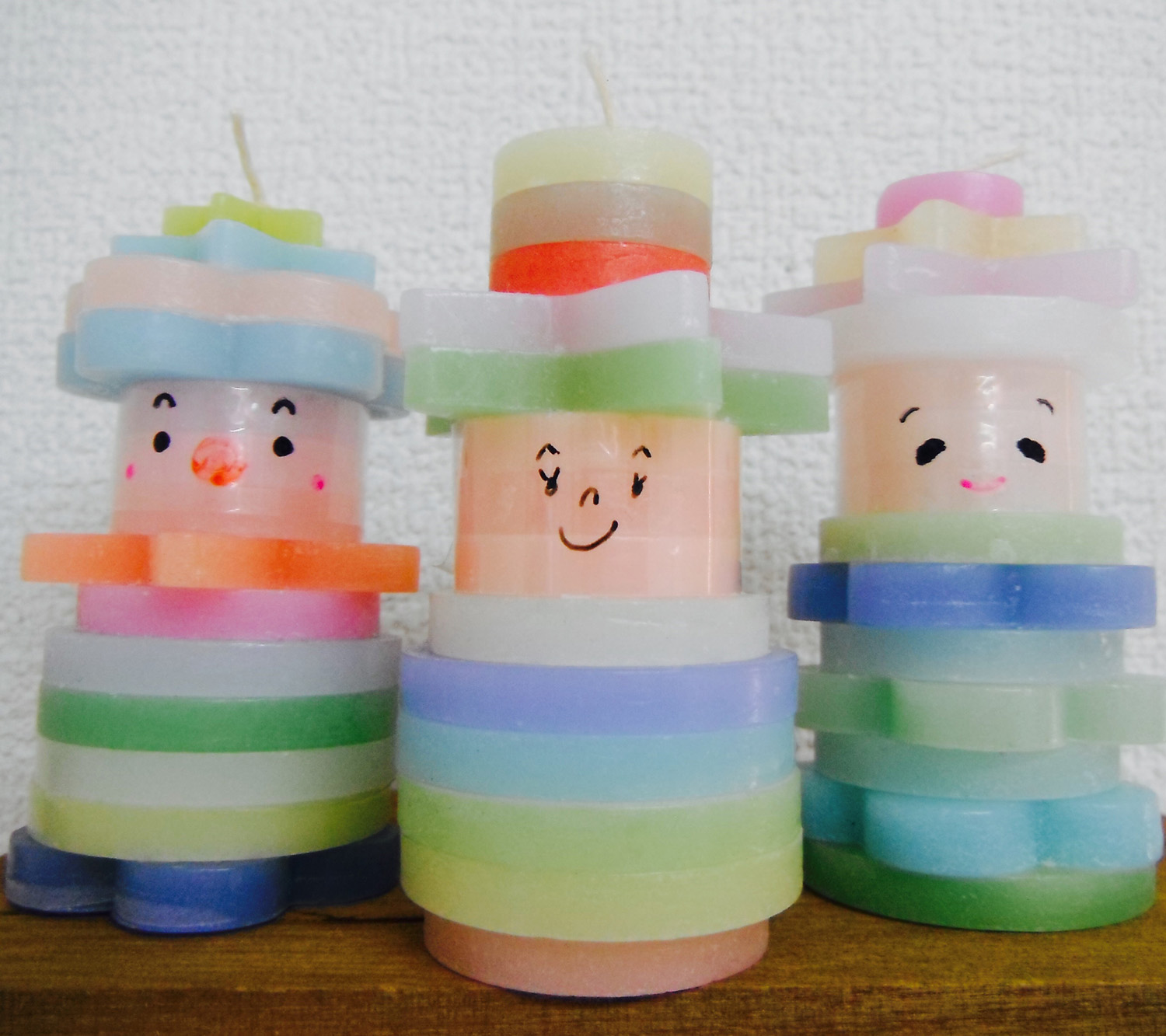 カラフルなキャンドルのチップを使い、自分だけのオリジナルのかわいい小人のキャンドルかkasane キャンドルが作れます。きれいなキャンドルチップは選ぶだけでも楽しい時間です。簡単な手順なので小さなお子様も楽しんで頂けます。