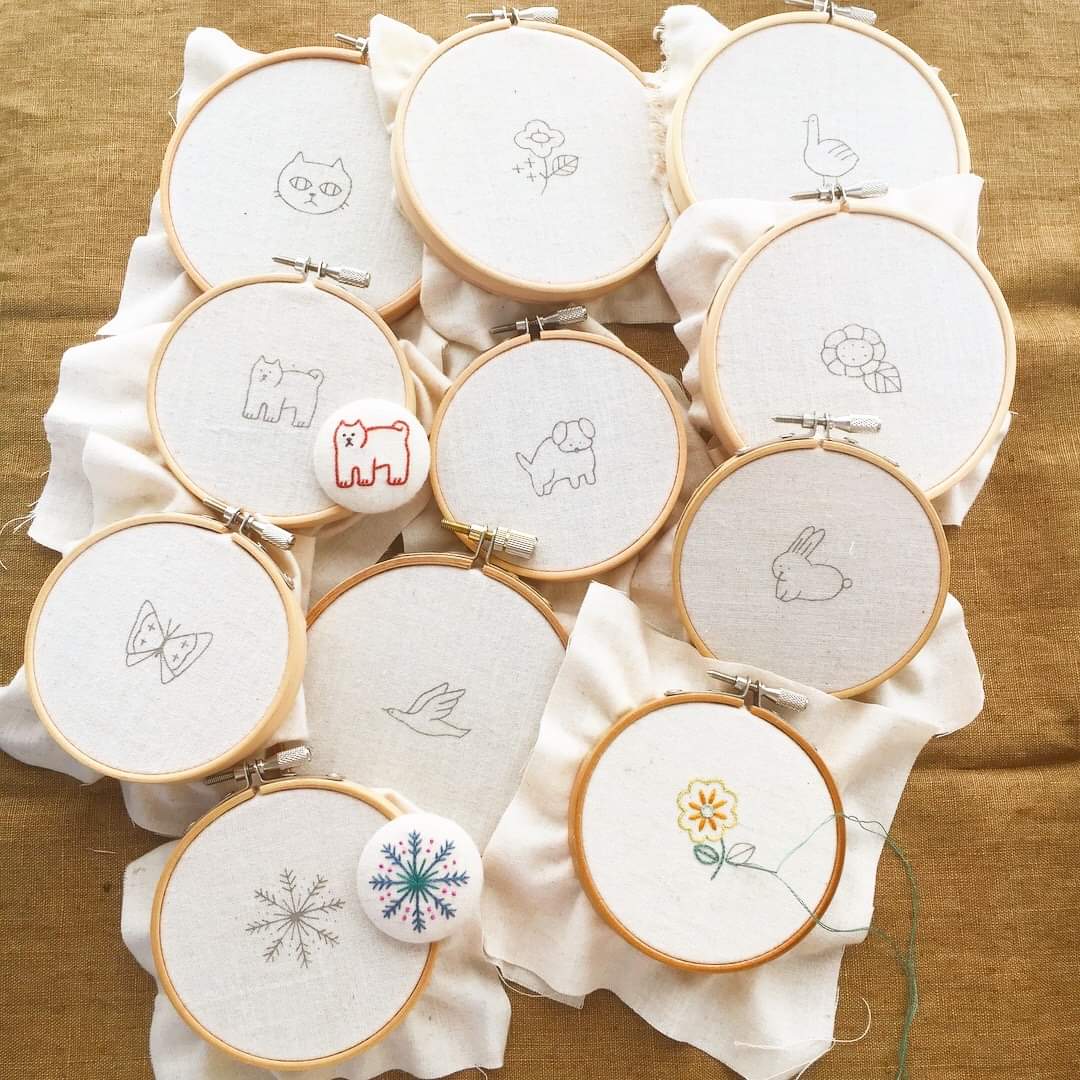 お好きな図柄と色糸をお選びいただき、絵の上をなぞるように刺繍してゆきます