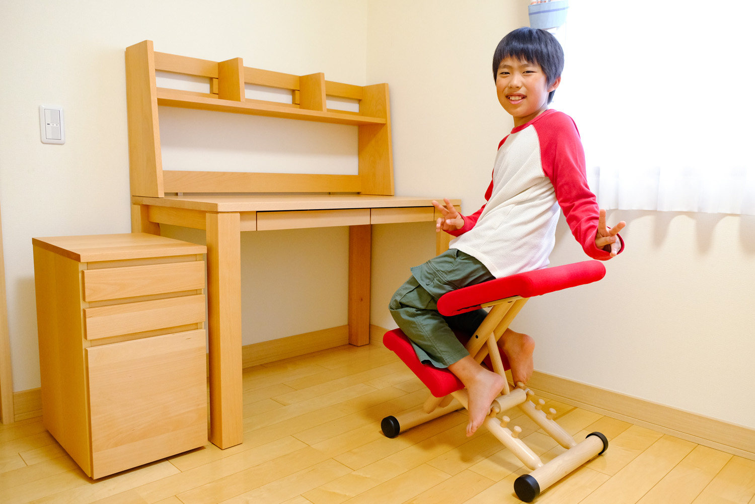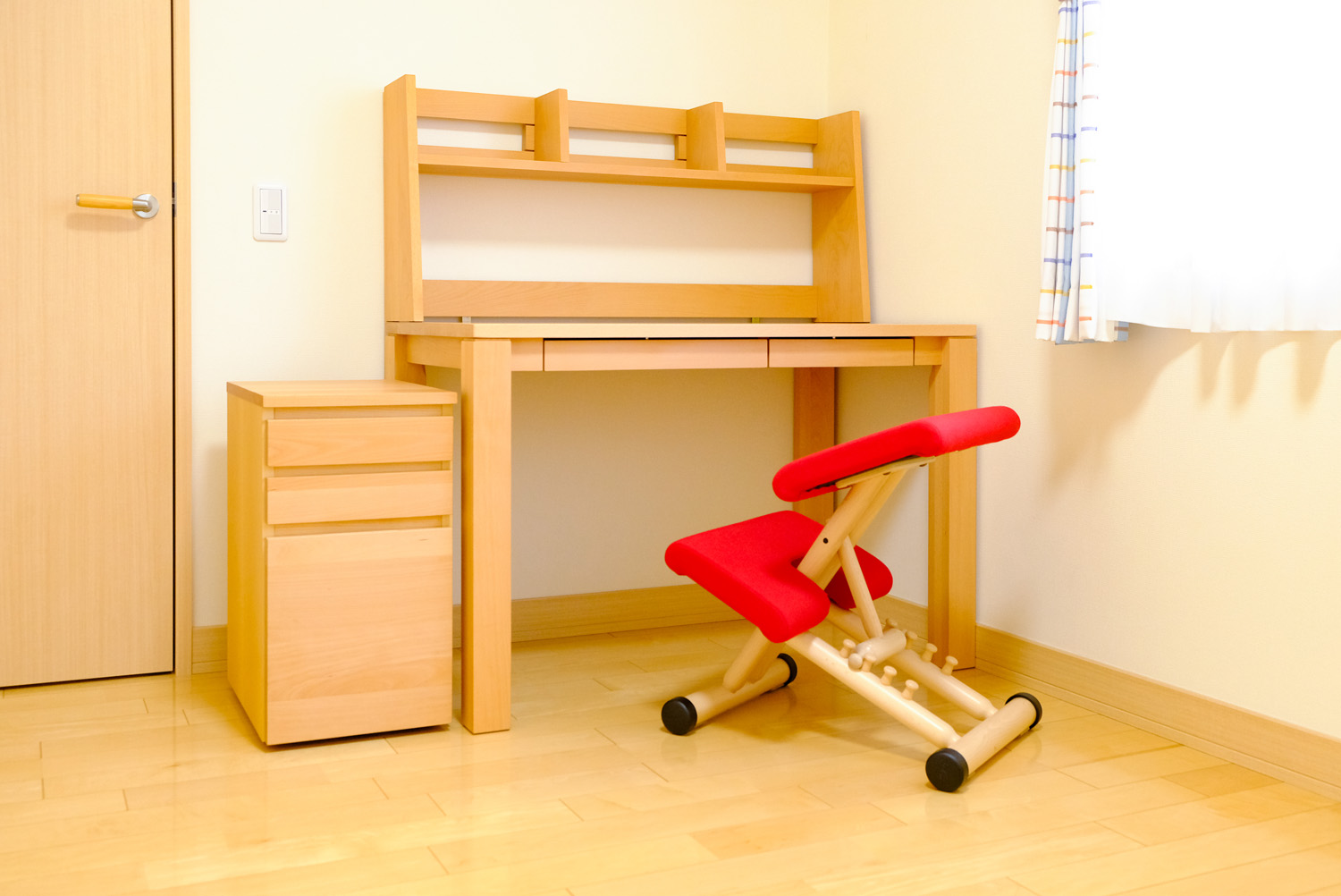 こちらは滑らかで明るい色のブナ材で、壁にすっきりと納まり軽やかな雰囲気になりますね。