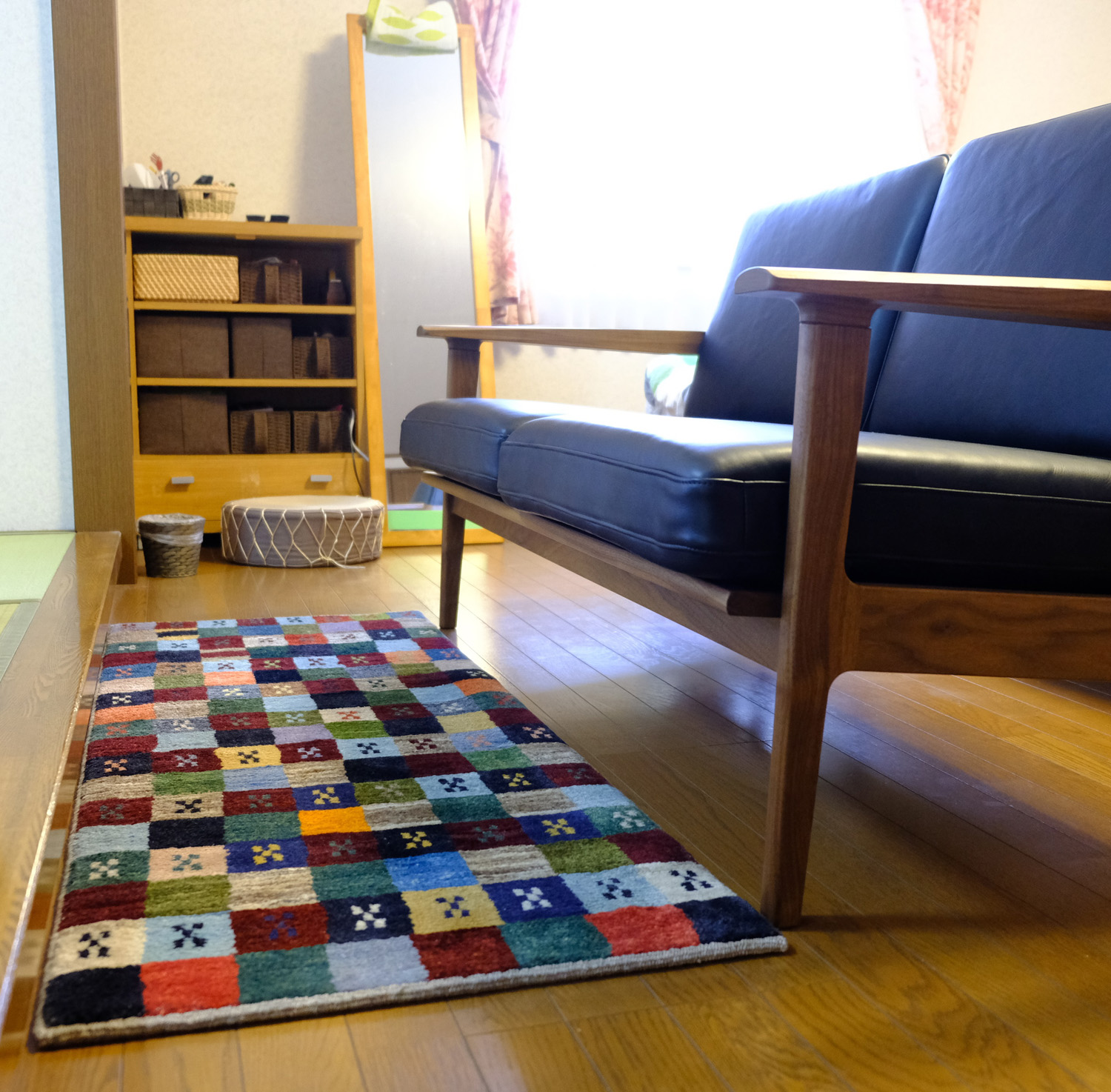 玄関は人が出入りをするところなので、このギャッベがあると心強く感じます。イランの織り子さんも日本の私たちも家庭を守りたいという願いは共通ですね。