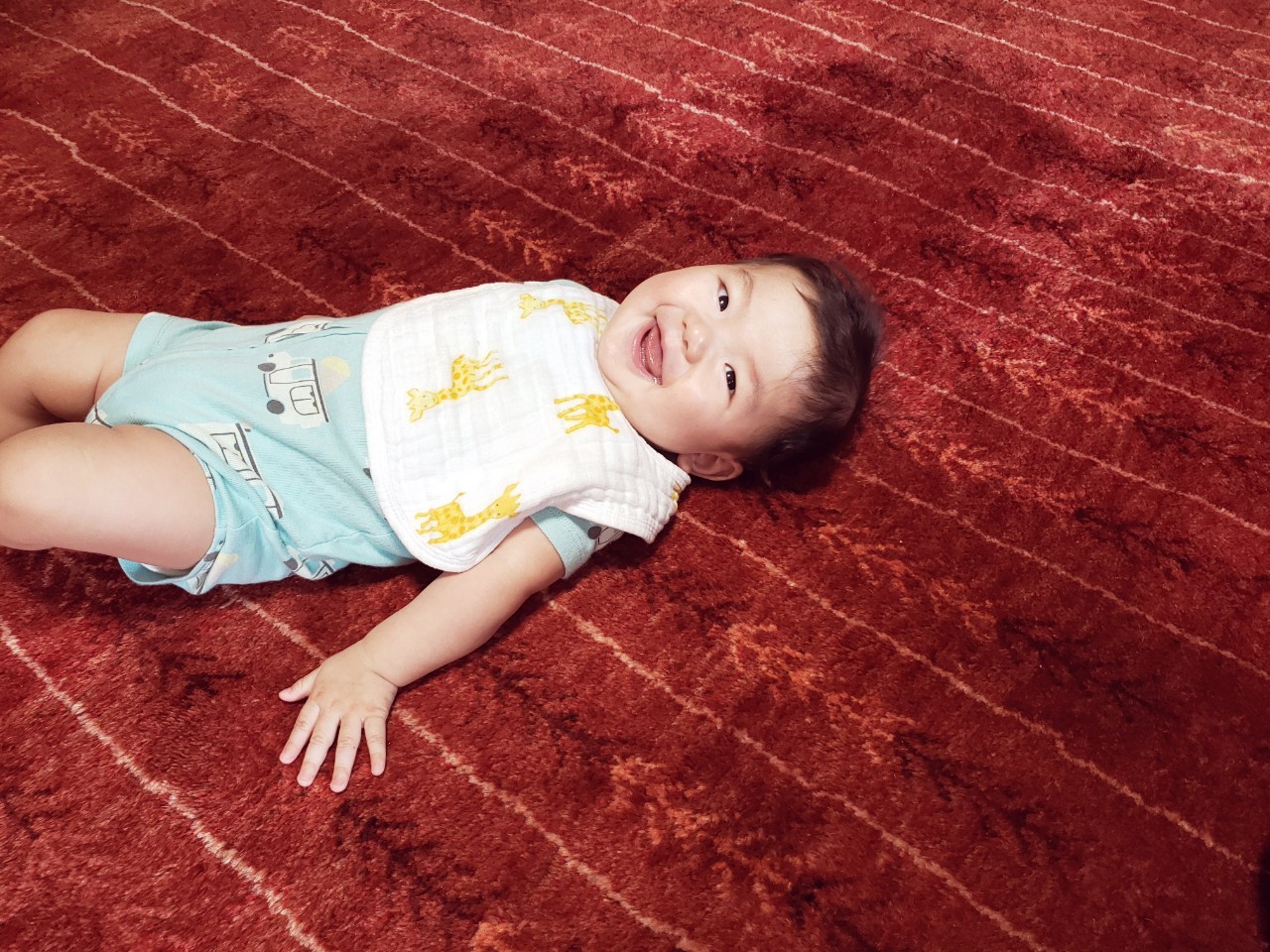 そして、アートギャッベの上で笑顔が弾ける、可愛いらしい男の子です。