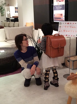 緊張気味の贈呈式でしたが、いざランドセルのメンテナンス方法をスタッフが説明すると・・・「わたしも塗りたい!」と革の保湿クリームを早速自らランドセルに塗ってくれました(^^)これからもお手入れしながら大切に使ってくださいね。