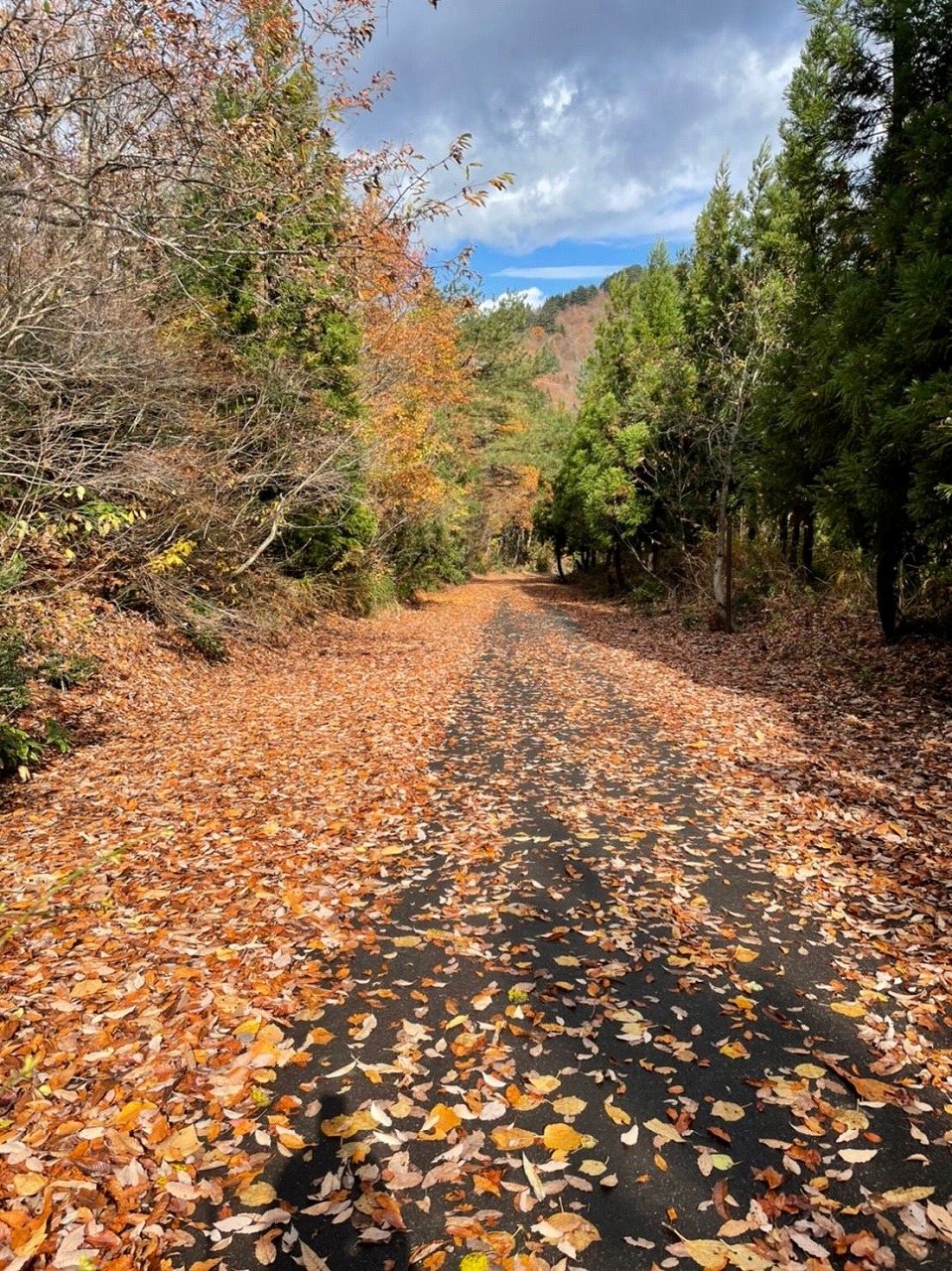 上の写真は、森に行く途中で立ち寄ったダムで見られた景色です。青空と紅葉のコントラストが晴れやかで綺麗ですね。