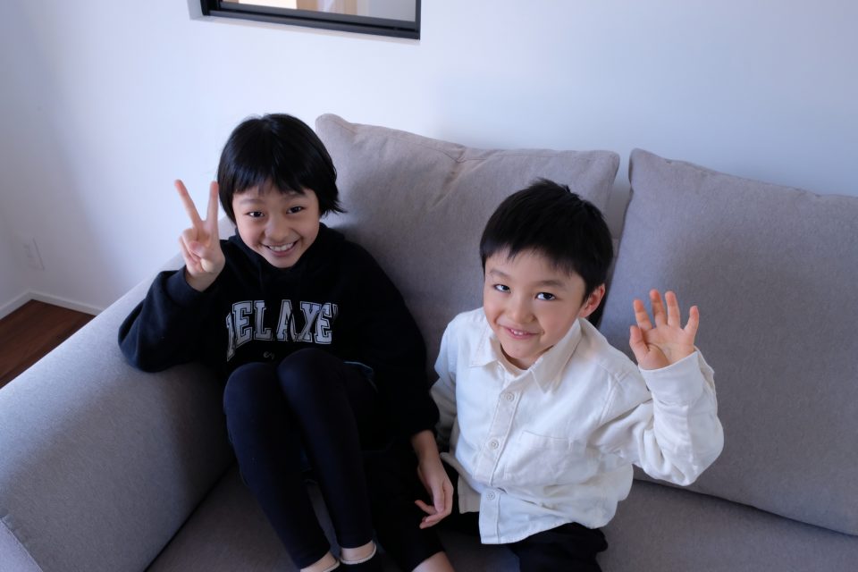 新しいソファが届いたときのワクワク感や喜びの気持ち、、二人のお子さんたちの表情が全てを物語ってくれてますね。